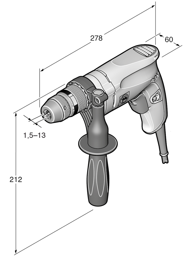 <div class="row"><div class="col-sm-12 col-lg-12"><table class="table table-striped"><tr><td>Номинальная потребляемая мощность</td><td>500 Вт</td></tr><tr><td>Эффективная мощность</td><td>270 Вт</td></tr><tr><td>Скорость вращения под нагрузкой</td><td>0 - 900 об/мин</td></tr><tr><td>Скорость вращения на холостом ходу</td><td>0 - 1 500 об/мин</td></tr><tr><td>Крутящий момент при макс. выходной мощности</td><td>9 Нм</td></tr><tr><td>Пусковой момент</td><td>24 Нм</td></tr><tr><td>Раствор сверлильного патрона</td><td>1,5 - 13 мм</td></tr><tr><td>Макс. Ø сверла по стали</td><td>10 мм</td></tr><tr><td>Макс. Ø сверла (нерж. сталь)</td><td>10 мм</td></tr><tr><td>Макс. Ø сверла (легкие сплавы)</td><td>15 мм</td></tr><tr><td>Макс. Ø сверла (дерево)</td><td>30 мм</td></tr><tr><td>Нарезание резьбы до</td><td>M 6</td></tr><tr><td>Крепление патрона</td><td>1/2 in-20 UNF</td></tr><tr><td>Диаметр зажимной шейки</td><td>43 мм</td></tr><tr><td>Угловой просвет</td><td>23 мм</td></tr><tr><td>Кабель с штекером</td><td>5 м</td></tr><tr><td>Вес согласно EPTA</td><td>1,80 кг</td></tr><tr><td>Уровень шума LpA</td><td>82 dB</td></tr><tr><td>Погрешность измеренного значения KpA</td><td>3 dB</td></tr><tr><td>Уровень звуковой мощности LWA</td><td>93 dB</td></tr><tr><td>Погрешность измеренного значения KWA</td><td>3 dB</td></tr><tr><td>Пиковый уровень звука LpCpeak</td><td>96 dB</td></tr><tr><td>Погрешность измеренного значения KpCpeak</td><td>3 dB</td></tr><tr><td>Значение вибрации 1 αhv 3-ход.</td><td>αh,D 3,0 m/s²</td></tr><tr><td>Погрешность измеренного значения Kα</td><td>1,5 m/s²</td></tr></table></div></div>