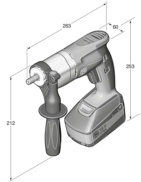 Удобная ручка FEIN с оптимальным положением в руке для передачи усилия подачи непосредственно по оси сверления.