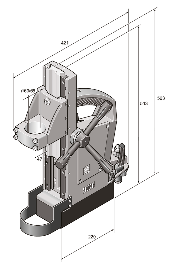 Подвижная магнитная стойка с точной юстировкой для дрелей с производительностью сверления до 32 мм.
