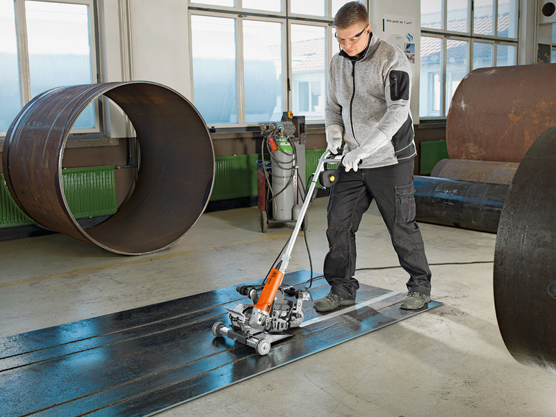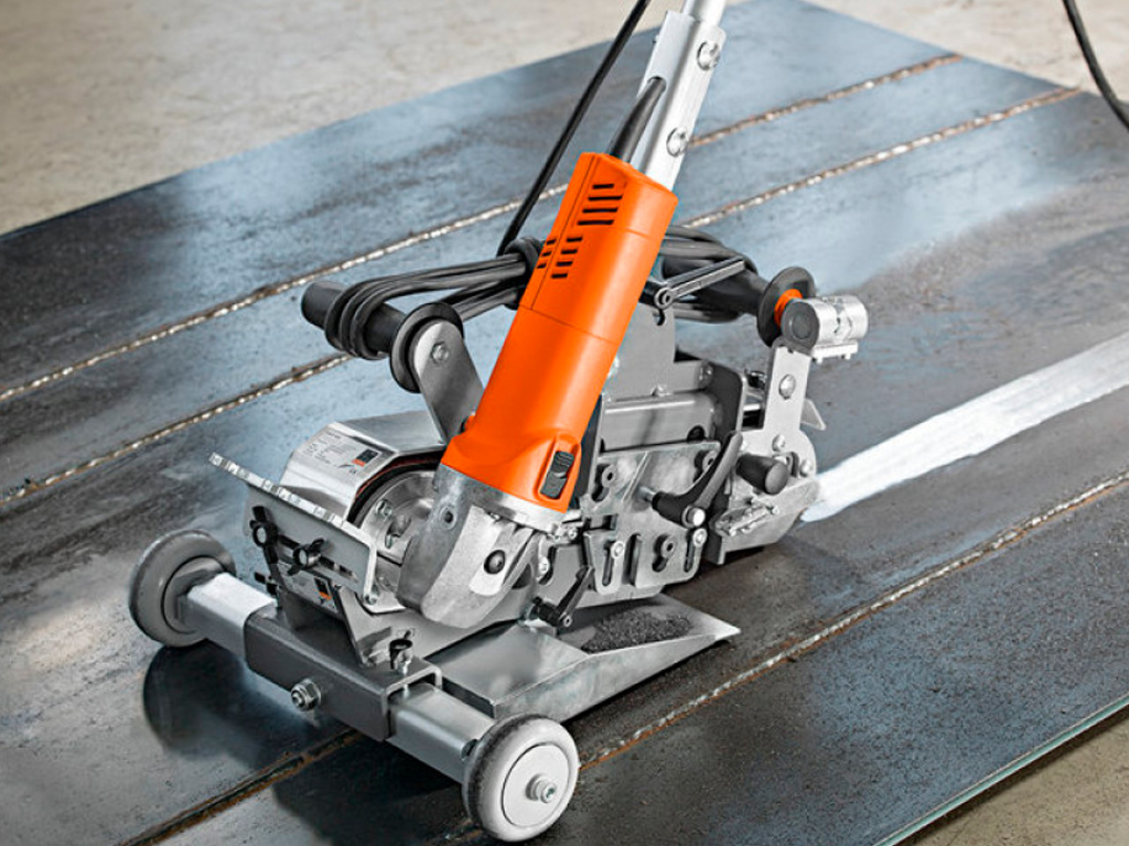Минимум усилий при шлифовании сварных швов большой длины благодаря роликовой направляющей.