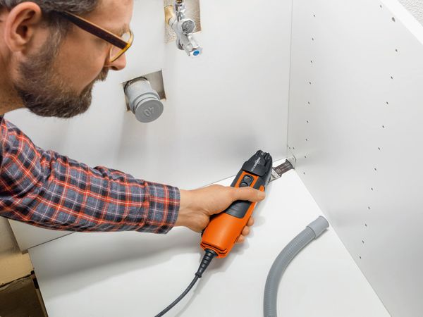 Эффективный многофункциональный инструмент для отделки и ремонта с базовой оснасткой для пиления по дереву, металлу, гипсокартону и пластику.