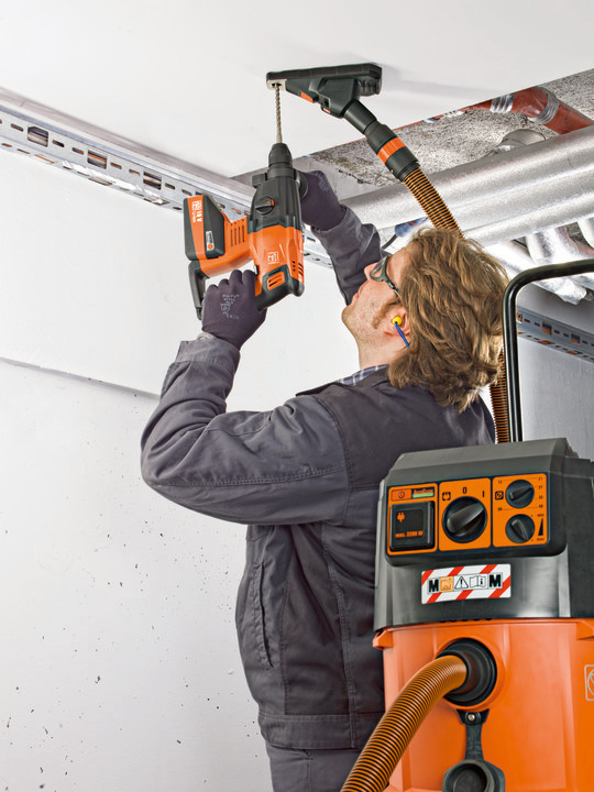 Насадка для сбора пыли при сверлении подходит к пылесосам для влажной и сухой уборки. Сверление без образования пыли на всех распространенных покрытиях стен и потолков. Для всасывающего шланга диаметром 35 мм.