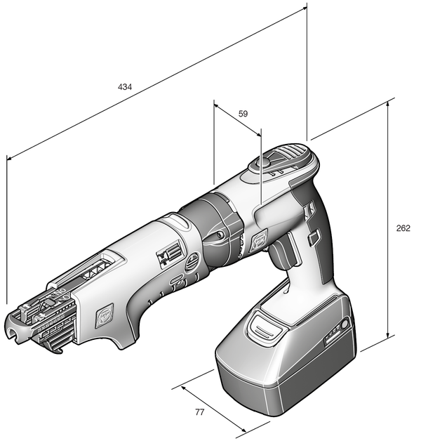 Мощный винтоверт с магазином: более 2 300 завинчиваний в условиях серийного производства за один заряд аккумулятора.
